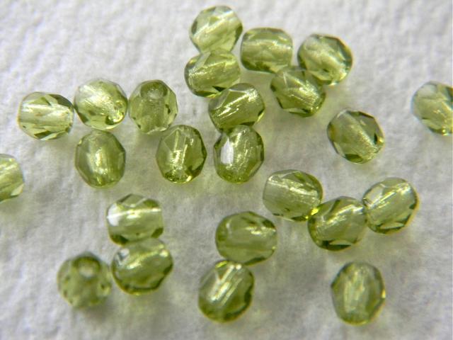 Czech fire-polished 4mm round Olivine, 50pcs