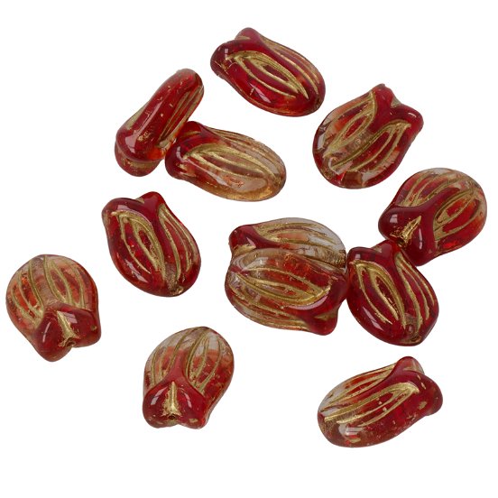 Home / Glass beads and pendants / Other glass beads / Czech glass flower beads / Czech glass tulip bead 16x11mm red/gold, 2pcs