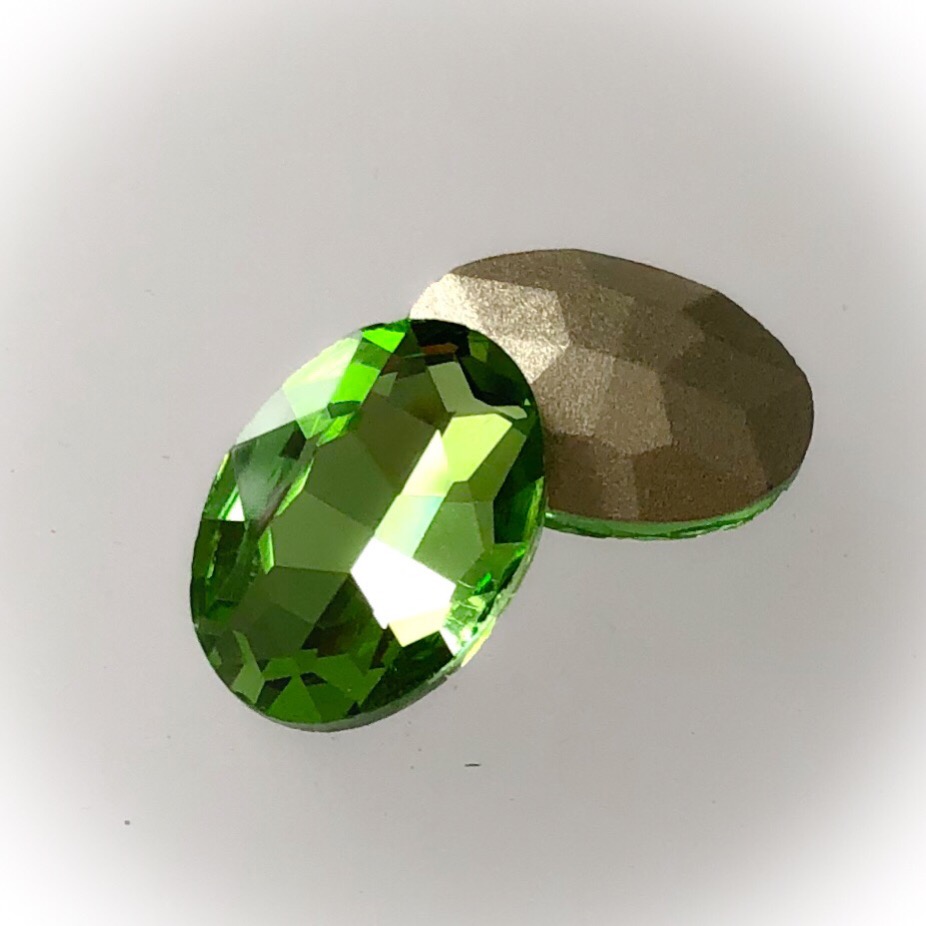 Home / Cabochons, rivolis and chatons / Faceted oval glass cabochons / 18x13mm / Faceted glass cabochon 18x13x5.5mm, Peridot