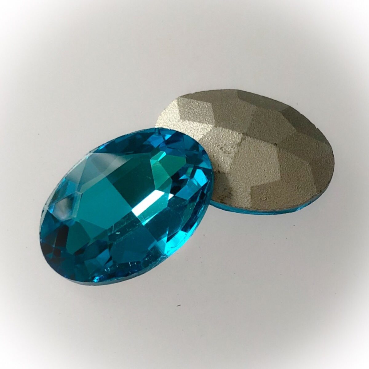 Faceted glass cabochon 30x20x8.5mm, Aqua