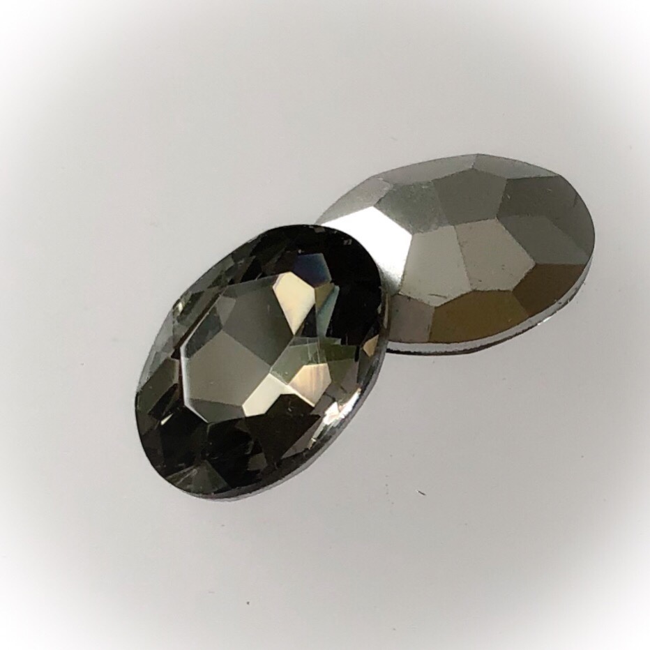 Faceted glass cabochon 30x20x8.5mm, Black diamond
