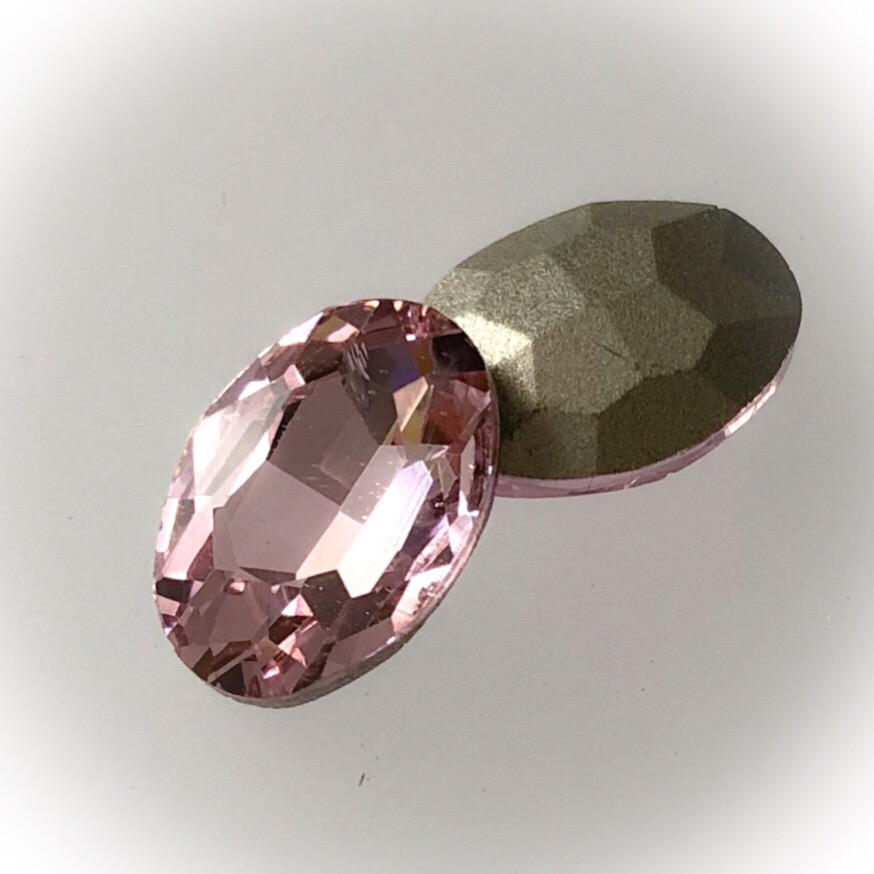 Faceted glass cabochon 30x20x8.5mm, Light rose