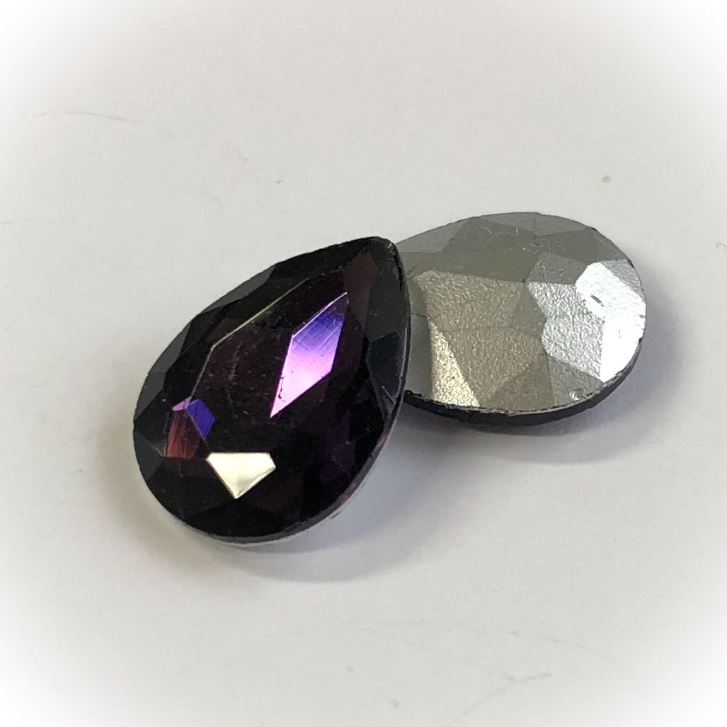 Home / Cabochons, rivolis and chatons / Faceted teardrop glass cabochon / 14x10mm / Faceted teardrop glass cabochon 14x10x4.5mm, Violet