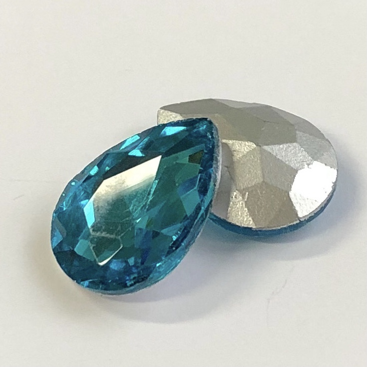 Home / Cabochons, rivolis and chatons / Faceted teardrop glass cabochon / 18x13mm / Faceted teardrop glass cabochon 18x13x6.5mm, Aqua