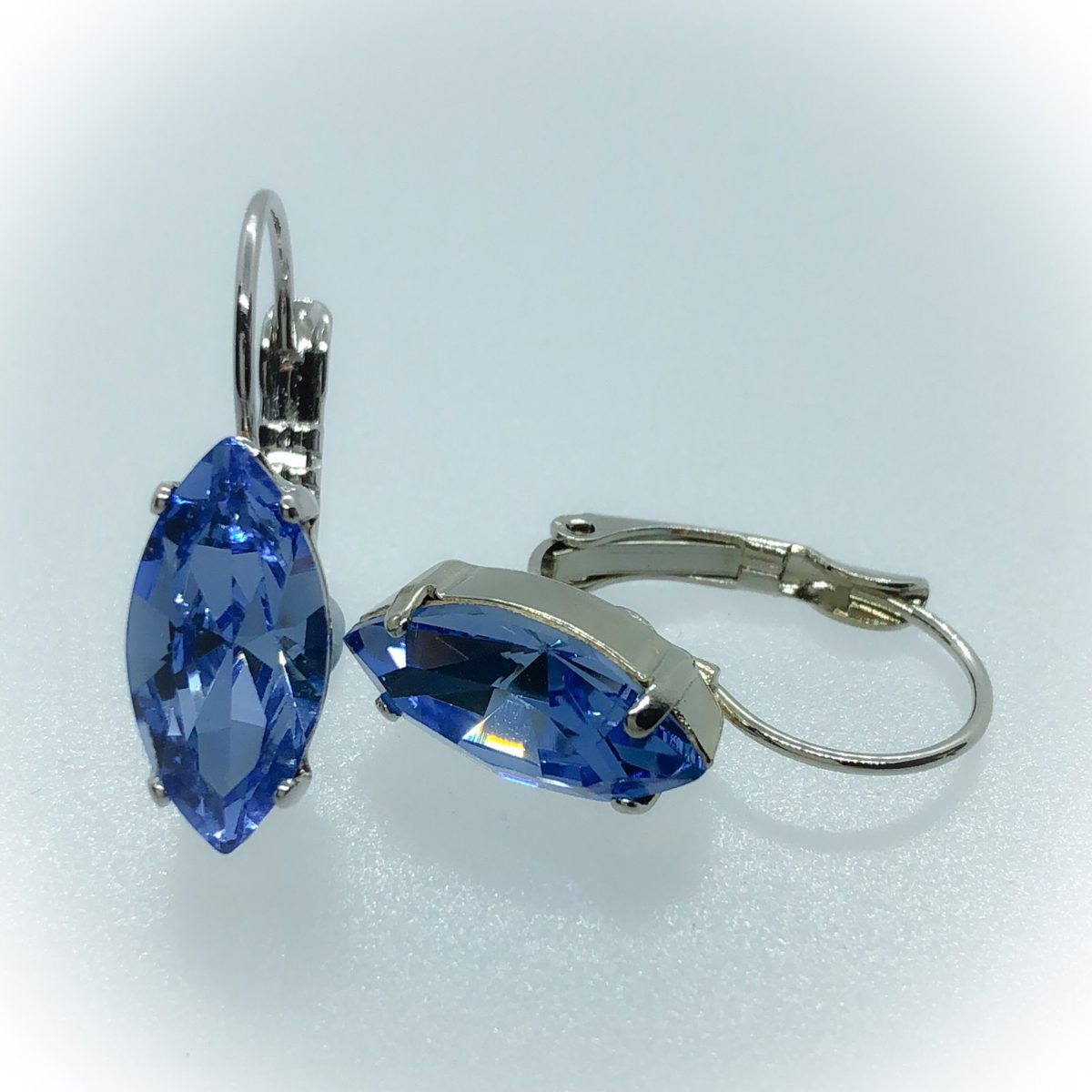 Rhodium plated 15x7mm Navette, Swarovski Light sapphire