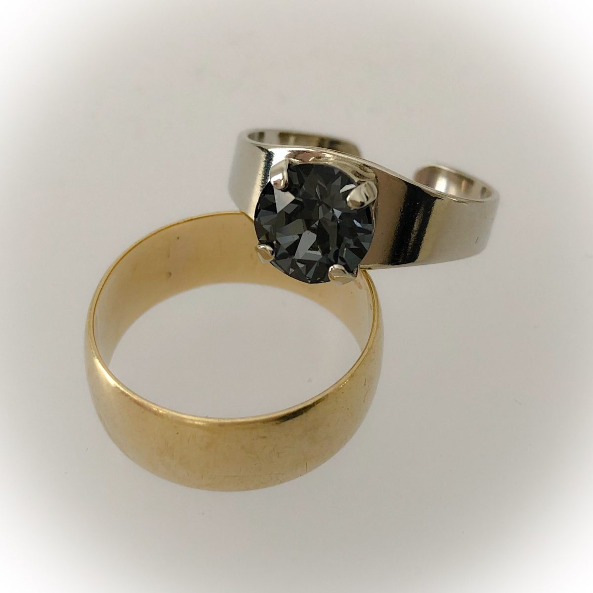 Nickel free, adjustable ring with Swarovski SS39 (8mm) crystal silver night.