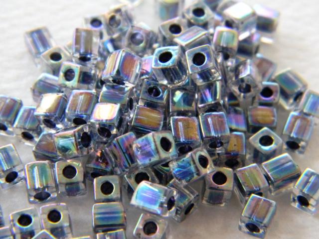 Home / Seed beads / Miyuki square - 4mm / SB4.283 – Miyuki 4mm square, noir lined crystal AB 15g