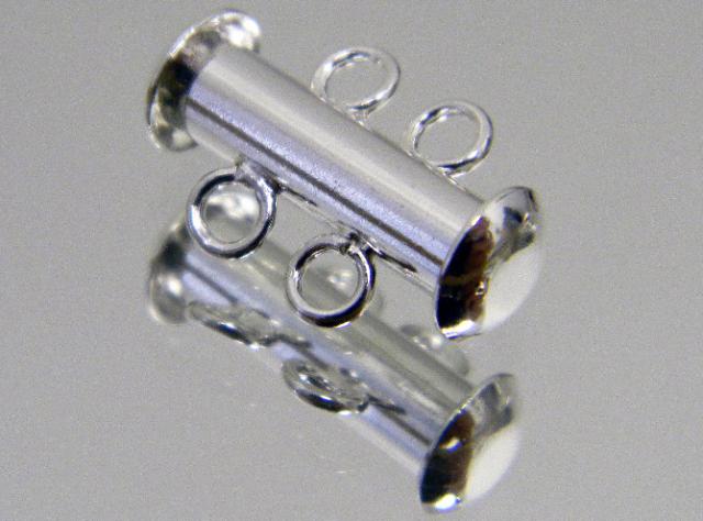 Silver plated slide lock clasp, 3 row