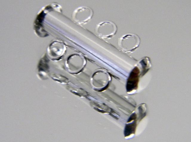 Home / Clasps / Multi strand clasps / Silver plated slide lock clasp, 3 row