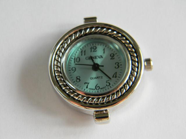 Watch face silver plated round aqua