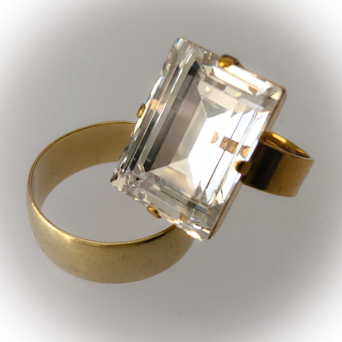 Nikkelitön, säädettävä sormus. Swarovski 18x13mm, crystal.