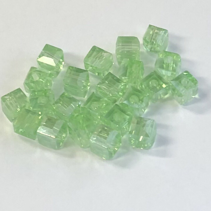 Etusivu / Lasihelmet ja riipukset / Muut lasihelmet - kuutiot, pisarat, kukat, pyöreät / Lasi kuutiot / Lasi kuutio 4mm Vaalea vihreä, 20kpl
