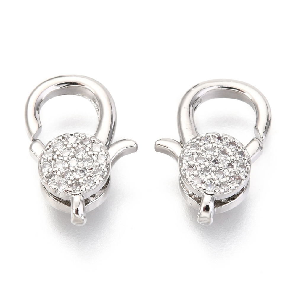 Messinki mikro pave zirkonia papukaijalukko, platina väri 17.5x10x5mm