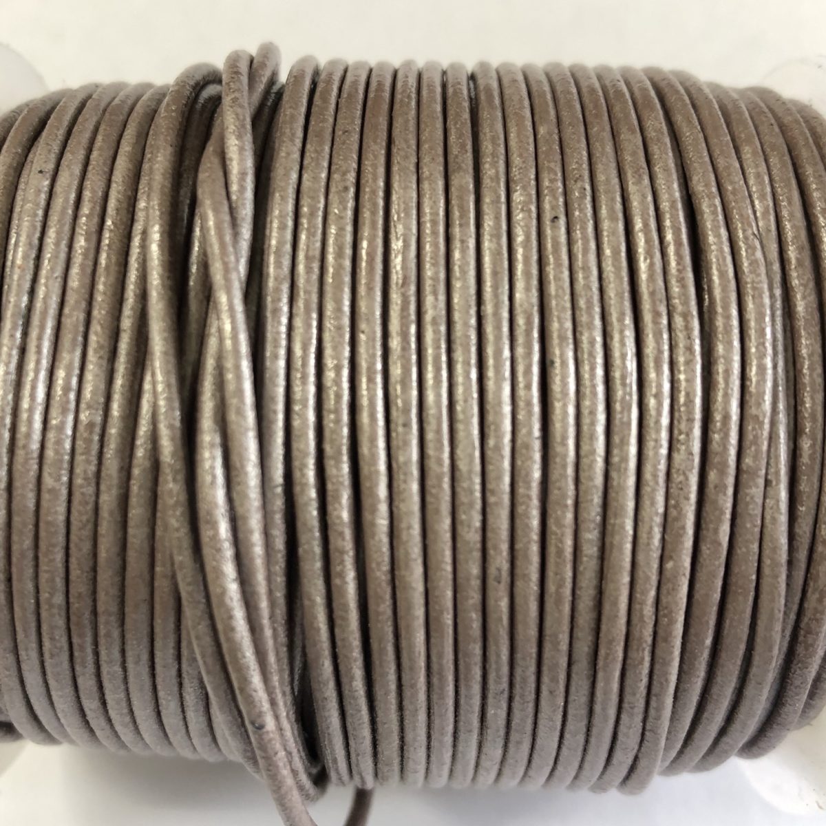 Etusivu / Vaijerit, langat ja ketjut / Nahka- ja mokkanauhat / Pyöreä 1.5mm / Nahkanauha 1.5mm metallic taupe, 1m