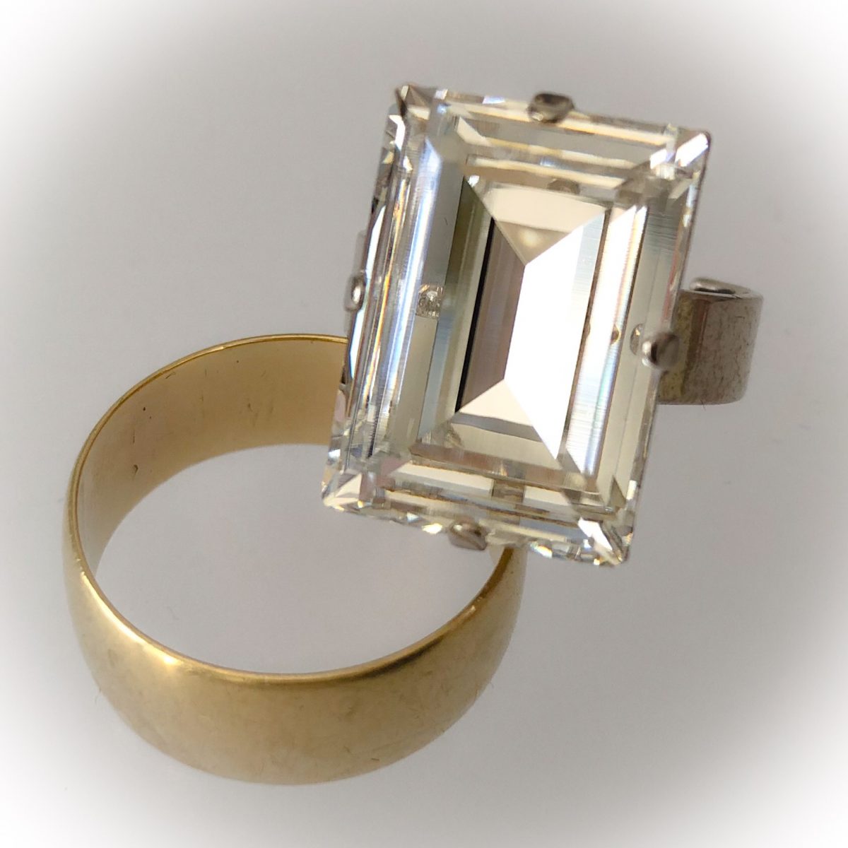 Nikkelitön, säädettävä sormus. Swarovski 18x13mm, crystal.