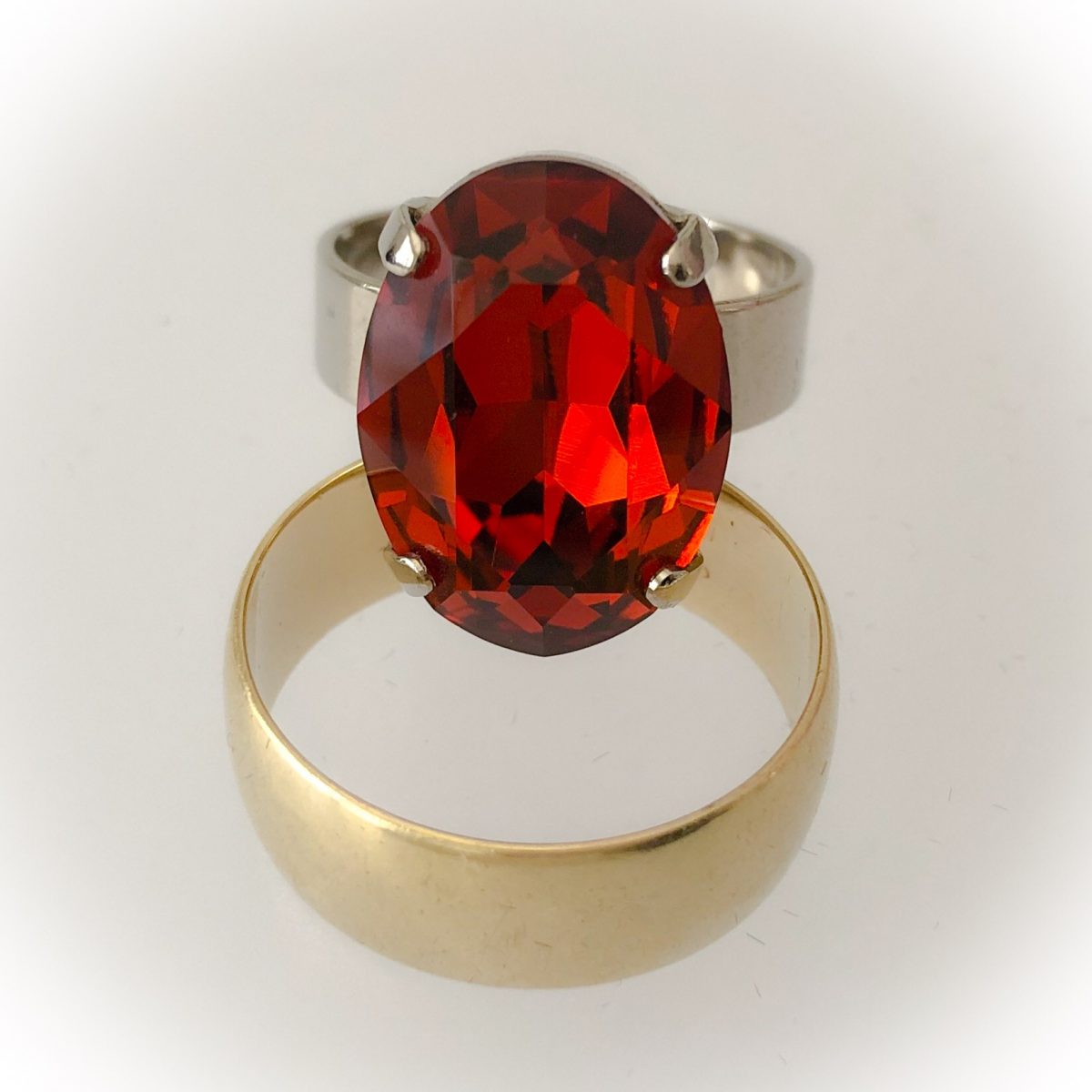 Nikkelitön, säädettävä sormus. Swarovski 18x13mm, siam