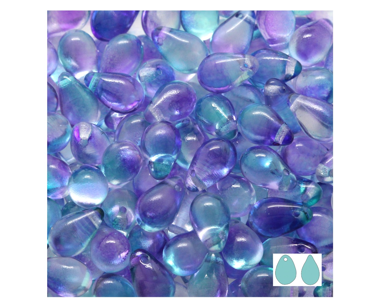 Etusivu / Lasihelmet ja riipukset / Muut lasihelmet - kuutiot, pisarat, kukat, pyöreät / Pisarat / Preciosa lasi pisara 9x6mm violet/aqua, 12kpl