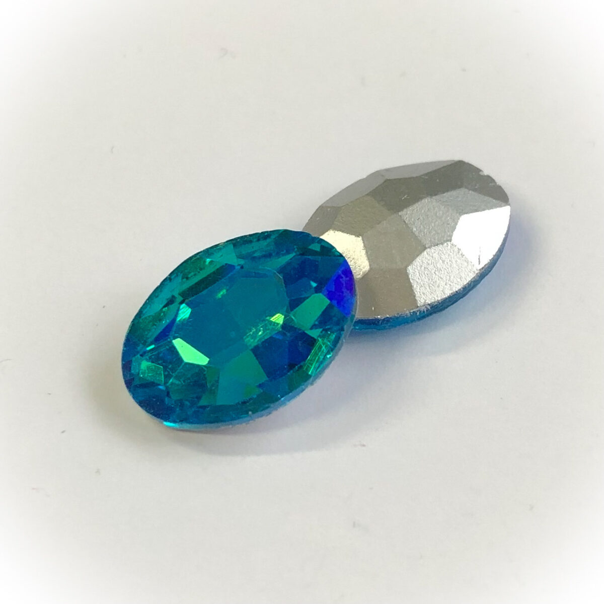 Etusivu / Kapussit, rivolit ja chatonit / Viistehiottu soikea lasi kapussit / 18x13mm / Viistehiottu lasi kapussi 18x13x5.5mm, Aqua/green AB