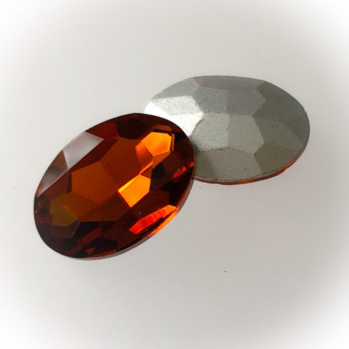Etusivu / Kapussit, rivolit ja chatonit / Viistehiottu soikea lasi kapussit / 18x13mm / Viistehiottu lasi kapussi 18x13x5.5mm, Dark amber