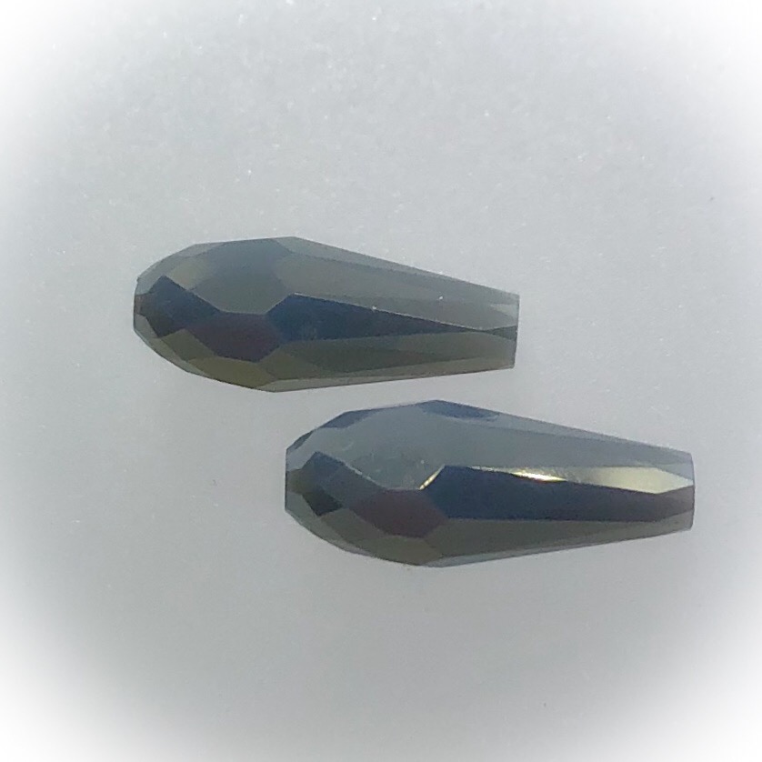 Etusivu / Lasihelmet ja riipukset / Muut lasihelmet - kuutiot, pisarat, kukat, pyöreät / Pisarat / Viistehiottu lasi pisara 14x6mm opaque grey AB, 2kpl