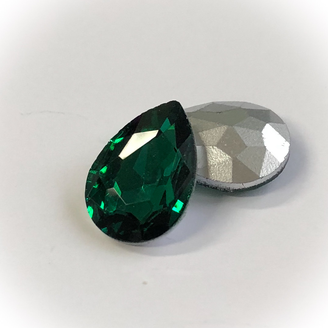 Etusivu / Kapussit, rivolit ja chatonit / Viistehiottu pisara lasi kapussit / 14x10mm / Viistehiottu pisara lasi kapussi 14x10x4.5mm, Smaragdi